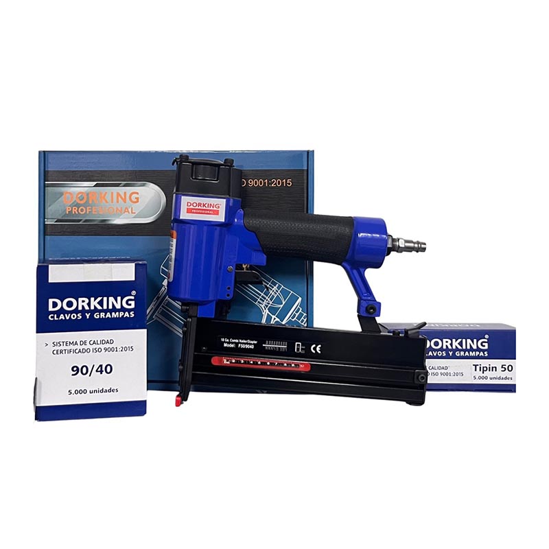 Clavadora Engrampadora neumática 2 en 1 Dorking Profesional es la herramienta ideal para aquellos que buscan precisión y eficiencia en sus proyectos de carpintería y manualidades. Herramienta versátil y potente para trabajos exigentes.