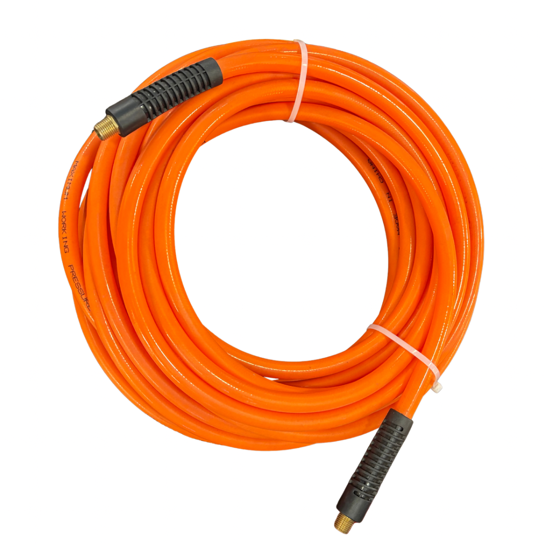 Fabricada en poliuretano de alta calidad, esta manguera neumática de 3/8” está diseñada para un uso intensivo en entornos industriales, talleres, construcción o trabajos de pintura. Su construcción robusta la hace resistente a torceduras, cortes y pinchaduras, garantizando un flujo de aire constante y seguro.